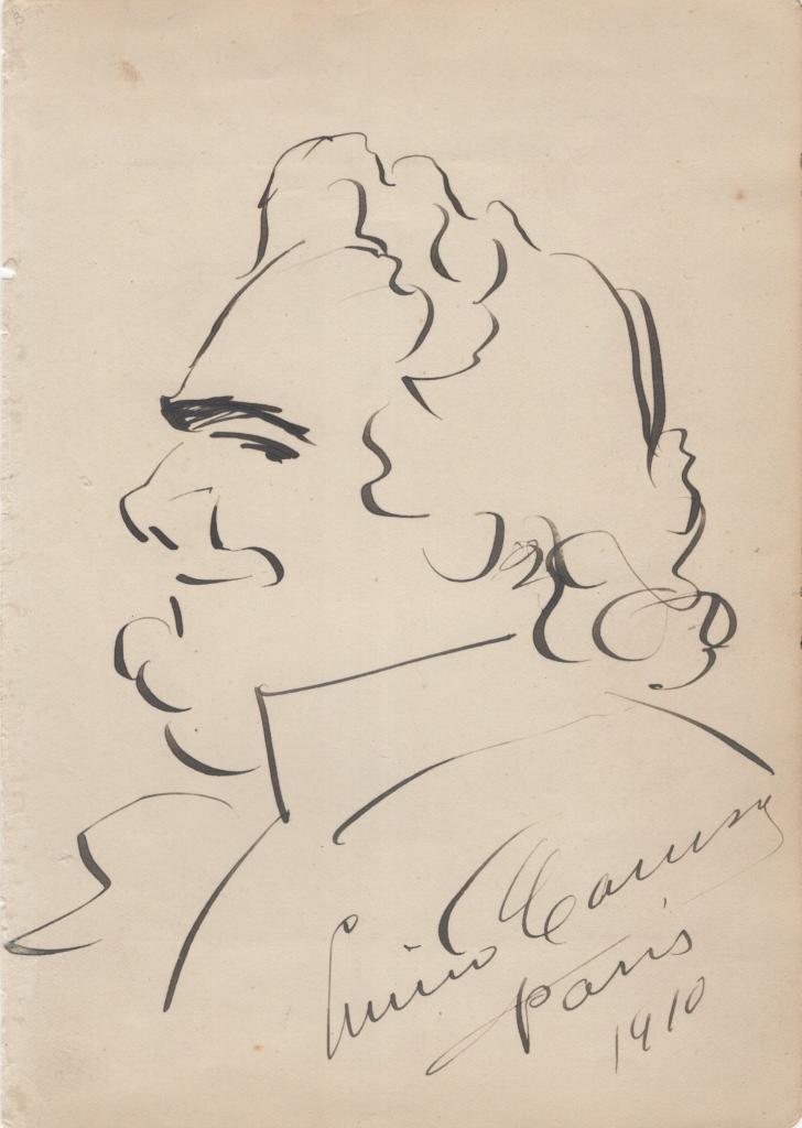 Straordinario disegno interamente autografo e firmato di Enrico Caruso, considerato uno dei più grandi tenori di tutti i tempi. Dopo gli esordi in Italia, conquistò fama mondiale al Metropolitan di New York, dove cantò per 18 stagioni. Celebre per la voce potente e il timbro inconfondibile, fu anche pioniere delle registrazioni discografiche. Amava disegnare caricature, spesso ispirate ai suoi ruoli operistici. Rarissimo disegno a inchiostro realizzato e firmato da Enrico Caruso, il più celebre tenore della storia del melodramma. L’opera, datata Parigi 1910, raffigura un autoritratto caricaturale dell’artista, tracciato con il suo tipico segno rapido e deciso. Caruso, oltre ad essere un’icona mondiale del canto lirico, fu anche un abile caricaturista e disegnatore. I suoi ritratti e autoritratti – ironici, teatrali e di straordinaria immediatezza – sono oggi considerati documenti preziosi del suo genio e della sua umanità. In questo esemplare si rappresenta con tratto fluido, sottolineando il profilo marcato e l’acconciatura riccioluta, con firma ben visibile in basso: "Enrico Caruso – Paris 1910". Testimonianza unica del legame indissolubile tra musica, teatro e arte figurativa nella figura del grande tenore, questo disegno unisce valore iconografico, autografo e storico. Ideale per collezionisti di musica lirica, autografi storici o disegni d’autore.