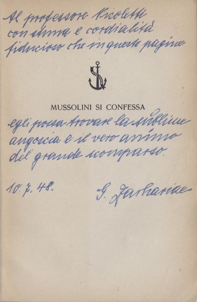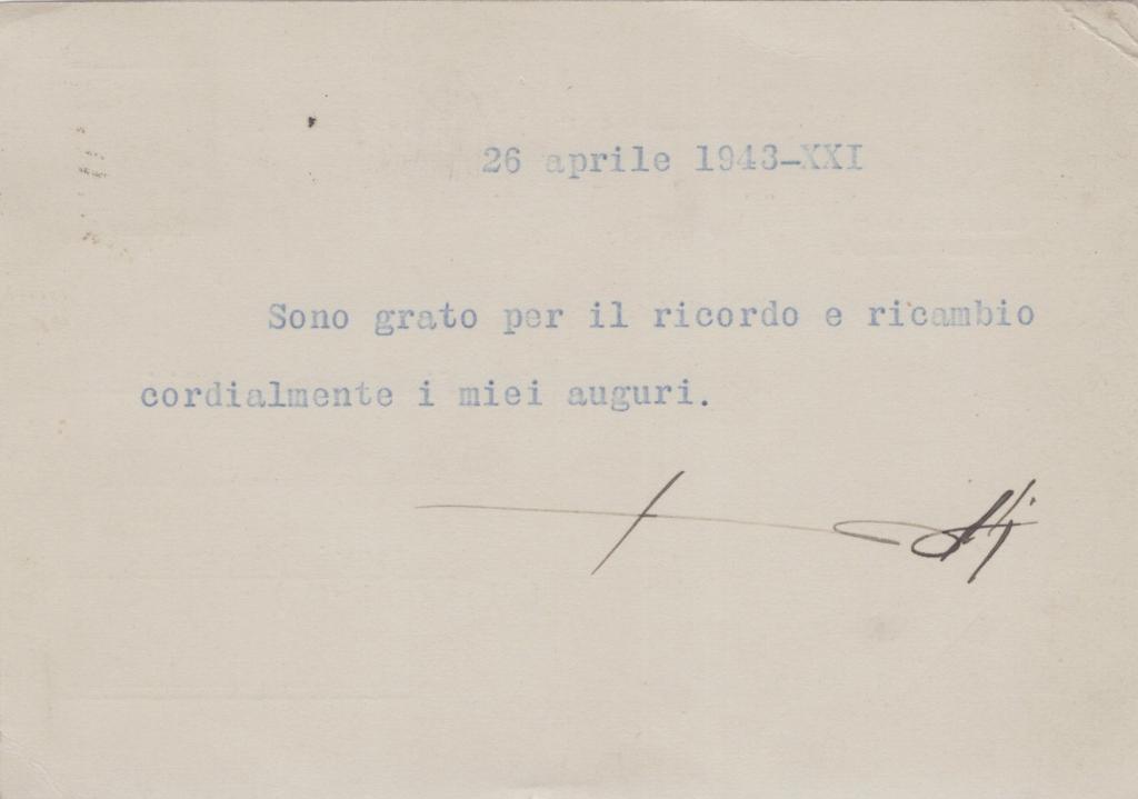 Autografo di Rodolfo Graziani noto Maresciallo d’Italia, protagonista delle campagne coloniali e comandante militare nella Seconda guerra mondiale. Ministro della Difesa della Repubblica Sociale Italiana, venne condannato a 19 anni di reclusione nel 1948, scontandone solo una parte. Figura emblematica e controversa del fascismo italiano.