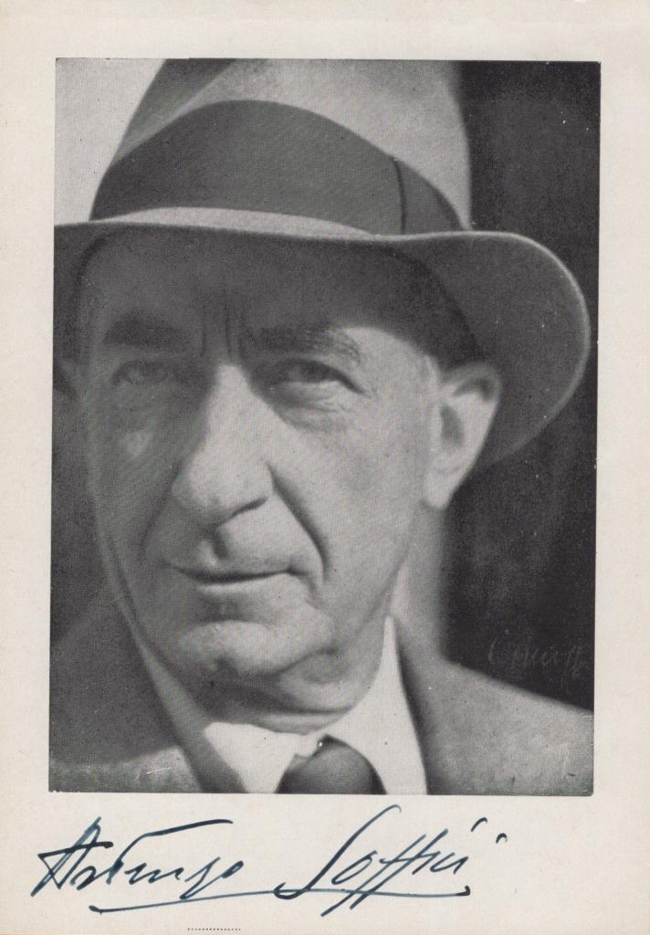 Fotografia con autografo di Ardengo Soffici celebre pittore, scrittore e critico d’arte, fu tra i protagonisti del Futurismo e dell’avanguardia fiorentina. Collaborò con Lacerba e contribuì a rinnovare il linguaggio artistico e letterario italiano. Fotografia che ritrae un primo piano di Soffici con il suo autografo apposto in calce. Condizioni: la fotografia è attaccata ad un foglio color arancio.