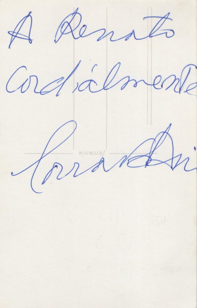 Autografo di Pier Paolo Pasolini celebre poeta, scrittore, regista, sceneggiatore, giornalista e intellettuale tra i più influenti del Novecento italiano. Cresciuto tra il Friuli e Roma, esordì con raccolte poetiche in friulano prima di affermarsi come romanziere con Ragazzi di vita (1955). Il suo stile crudo e poetico esplorava il sottoproletariato urbano e le contraddizioni dell’Italia del dopoguerra. A partire dagli anni '60 si impose anche nel cinema con film d’autore provocatori e visionari come Il Vangelo secondo Matteo (1964) e Salò o le 120 giornate di Sodoma (1975). Fu figura controversa, lucido critico della società dei consumi e della modernità. Morì tragicamente a Ostia il 2 novembre 1975.