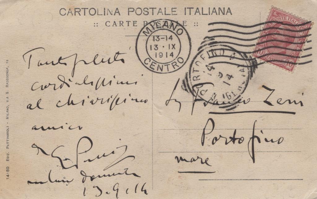 Cartolina con messaggio interamente autografo e firmato di Giacomo Puccini, considerato uno dei più grandi compositori d’opera della storia. Le sue opere, caratterizzate da intensità melodica e raffinatezza orchestrale, lo hanno consacrato come l’erede della tradizione italiana e un innovatore amato in tutto il mondo. Cartolina indirizzata all’amico Franco Zeni di Portofino Mare e redatta a Milano il 13 settembre 1914. Il celebre compositore, autore di opere immortali come La Bohème, Tosca, Madama Butterfly e Turandot, vergò di suo pugno il testo e la firma, questa è una testimonianza preziosa dei rapporti personali e privati del maestro. La cartolina ritrae la stanza Appartamento Giuseppe Verdi del Grand Hotel & Milan a Milano.