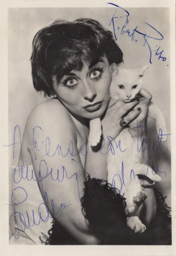 Fotografia in bianco e nero con autografo di Ornella Vanoni celebre cantante italiana. Interprete raffinata, ha spaziato dalla canzone d’autore al jazz, imponendosi come icona musicale e culturale del Novecento e del nuovo millennio. Fotografia con dedica a Gianni. L’immagine, di grande fascino, ritrae la cantante milanese con in braccio un elegante gatto siamese.