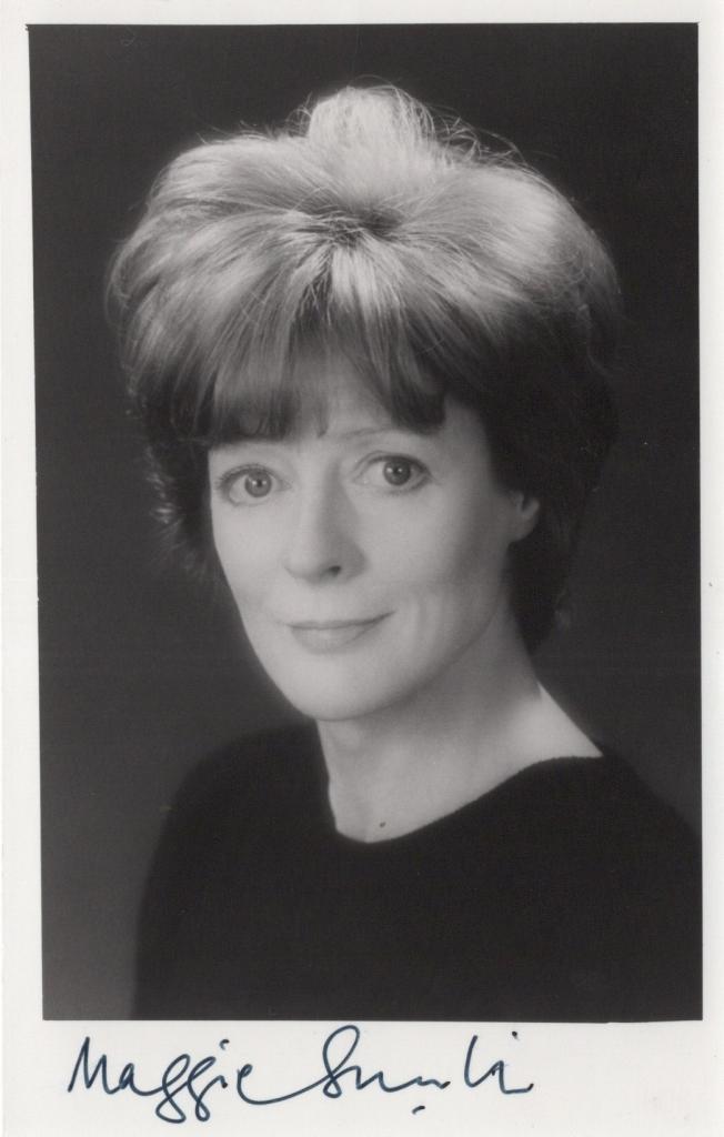 Elegante fotografia in bianco e nero con autografo di Maggie Smith celebre attrice pluripremiata di cinema, teatro e televisione. Vincitrice di due Premi Oscar e numerosi riconoscimenti, ha interpretato ruoli indimenticabili da La strana voglia di Jean a Harry Potter, dove ha vestito i panni della Professoressa McGranitt., una delle più grandi attrici britanniche. Il ritratto formale mette in risalto l’eleganza e l’intensità espressiva che hanno reso celebre la sua carriera, dal teatro shakespeariano al cinema internazionale. Autografo apposto sul margine inferiore.