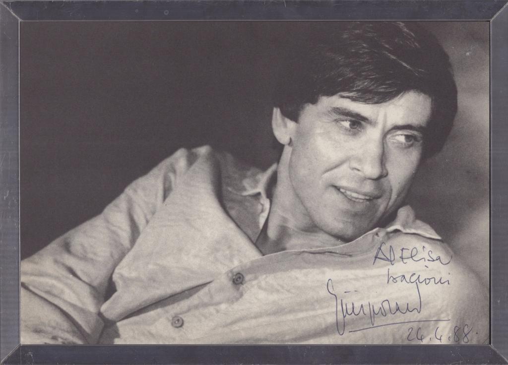 Fotografia in bianco e nero con dedica interamente autografa e firmata di Gianni Morandi celebre cantautore, con una carriera che spazia dagli anni ’60 a oggi. Con oltre 50 milioni di dischi venduti, è interprete di successi intramontabili come Fatti mandare dalla mamma a prendere il latte e C’era un ragazzo che come me amava i Beatles e i Rolling Stones. Dedica interamente autografa e firmata: “Ad Elisa bacioni - Gianni Morandi - 24/4/1988”. L’immagine immortala il cantante bolognese in un ritratto sensuale. Fotografia incorniciata.