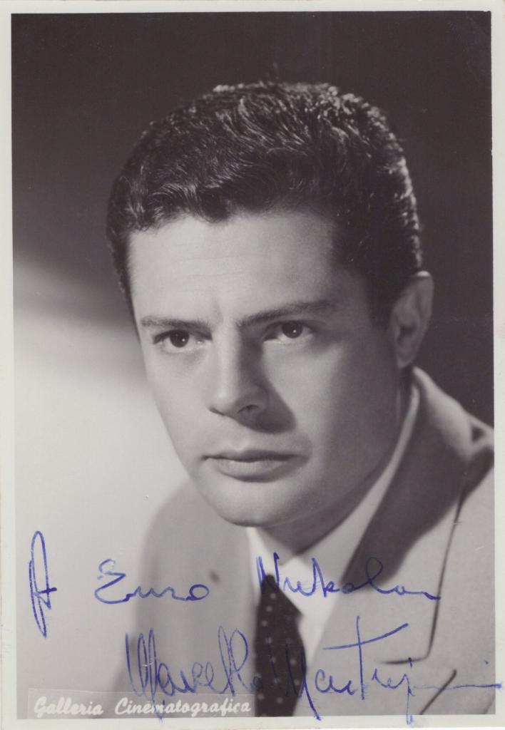 Fotografia con dedica interamente autografa e firmata di Marcello Mastroianni, è stato uno degli attori più amati e rappresentativi del cinema italiano. Collaborò con registi come Fellini, De Sica e Antonioni, imponendosi come simbolo del fascino e dell’ironia mediterranea. Indimenticabile in La dolce vita, 8½ e Divorzio all’italiana, fu candidato tre volte all’Oscar. Splendida fotografia ai sali d'argento realizzata dalla Galleria Cinematografica, raffigurante il giovane Marcello Mastroianni, icona assoluta del cinema italiano e internazionale. Sul margine destro si legge la dedica interamente autografa e firmata: “A Enzo Nubola – Marcello Mastroianni”.