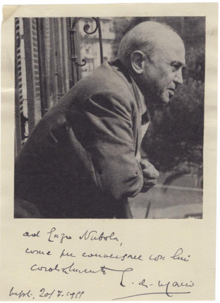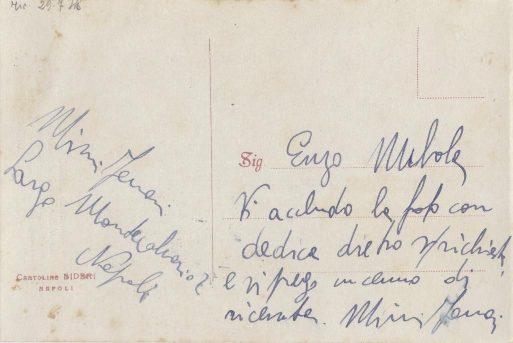 “Ad Enzo Nubola, come per conversare con lui cordialmente – E. A. Mario”. Datata Napoli, 20 luglio 1955.