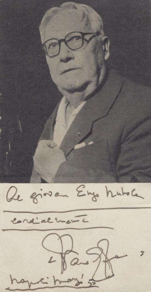Biglietto con fotografia con nota autografa e firmata di Franco Alfano, allievo di Massenet, fu tra i maggiori compositori italiani del primo Novecento. Autore di opere come Risurrezione e Sakùntala. Direttore del Conservatorio di Torino e di Napoli, lasciò un’impronta indelebile nella storia dell’opera italiana. Biglietto interamente autografo e firmato da Franco Alfano, celebre compositore e direttore d’orchestra, noto per aver completato il Turandot di Giacomo Puccini. Il documento, redatto a Napoli nel marzo del 1950, è indirizzato “al signor Enzo Nubola” e si chiude con la formula di cortesia “cordialmente” seguita dalla firma autografa del Maestro.ChatGPT ha detto: