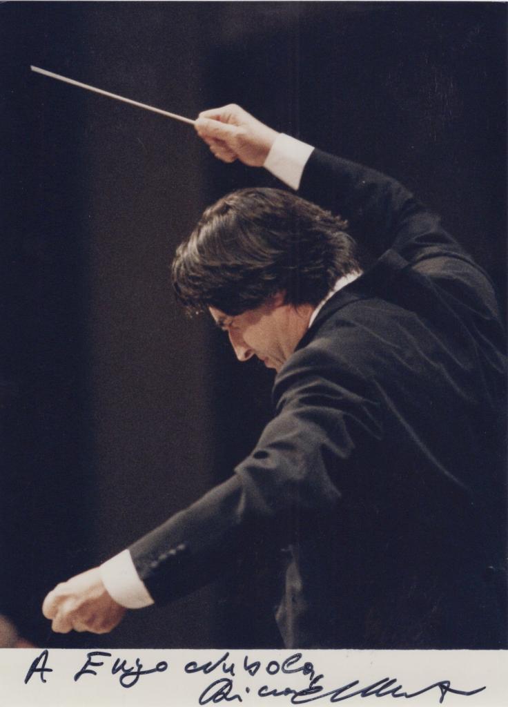 Dedica autografa e firmata di Riccardo Muti, uno dei più acclamati direttori d’orchestra del nostro tempo. Direttore musicale del Teatro alla Scala dal 1986 al 2005 e successivamente della Chicago Symphony Orchestra, Muti è riconosciuto a livello mondiale per la sua interpretazione rigorosa e intensa del repertorio sinfonico e operistico, in particolare di Verdi, Mozart e Beethoven. Rara fotografia a colori del celebre direttore d’orchestra Riccardo Muti, immortalato in un intenso momento di direzione. L’immagine, realizzata dai celebri fotografi Lelli & Masotti al Teatro alla Scala di Milano, cattura con straordinaria eleganza la forza espressiva e la concentrazione del Maestro. Sul margine inferiore è presente una dedica interamente autografa e firmata.ChatGPT ha detto: