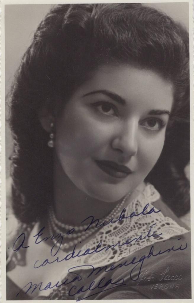 “A Enzo Nubola cordialmente, Maria Meneghini Callas”.