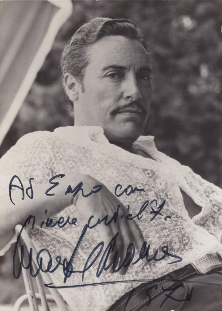 Fotografia con dedica interamente autografa e firmata di Mario Del Monaco celebre tenore italiano. Nato a Firenze, divenne famoso per le sue interpretazioni appassionate e vigorose nei ruoli verdiani e pucciniani. Indimenticabile la sua resa di Otello, considerata una delle migliori di sempre. Artista carismatico, dotato di una voce squillante e di grande potenza, è ricordato come uno dei pilastri della storia dell’opera del XX secolo. Magnifica fotografia ai sali d’argento che ritrae il celebre tenore Mario Del Monaco in un elegante ritratto a mezzo busto, dallo sguardo intenso e carismatico. Sul fronte campeggia una dedica interamente autografa e firmata: “Ad Enzo con sincera cordialità – Mario Del Monaco”.