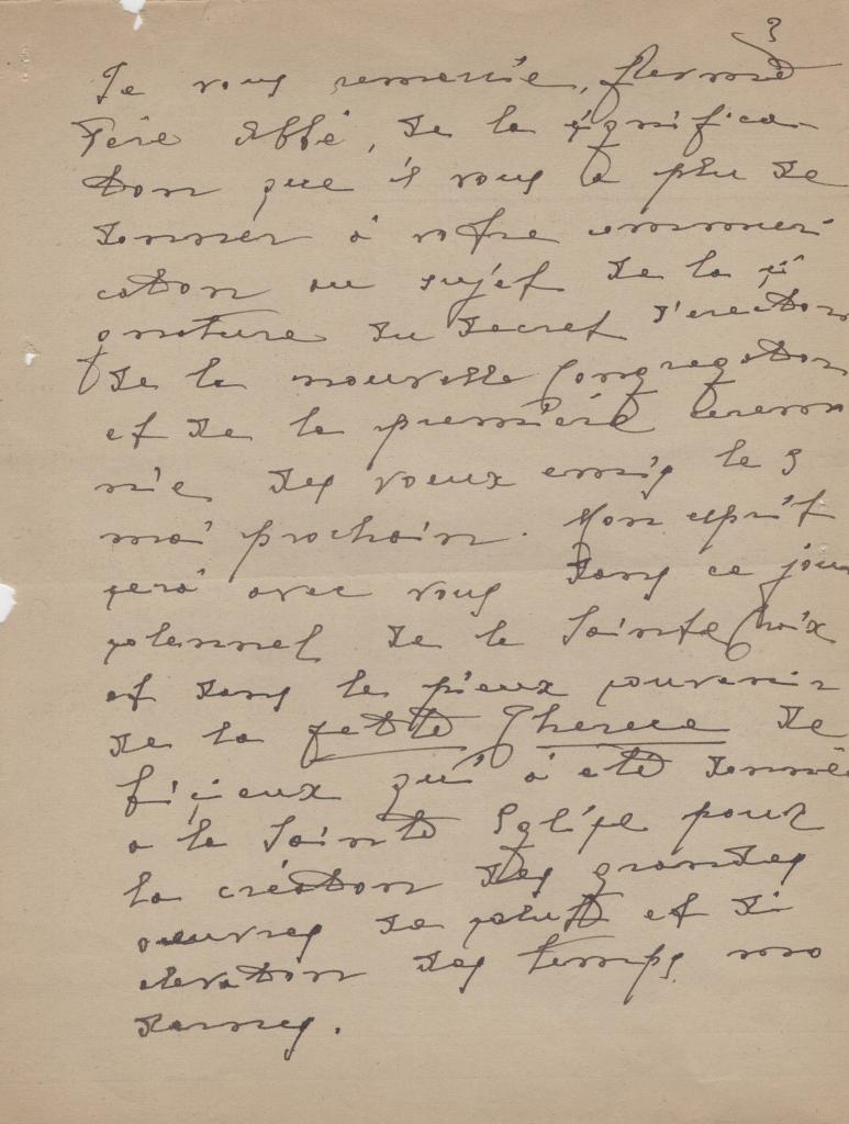 Raro manoscritto interamente autografo (senza firma) di Angelo Giuseppe Roncalli, futuro Papa Giovanni XXIII, redatto nel 1948, durante il suo servizio diplomatico come Nunzio Apostolico a Parigi. Trattasi di parte di una lettera interamente autografa (senza firma) di Angelo Giuseppe Roncalli, indirizzata ad un Abate (non specificato). Roncalli esprime con tono profondamente spirituale la propria gratitudine per l’opera e l’impegno del destinatario, auspicando la benedizione divina sulle sue “grandi opere di verità e di elevazione dei tempi nuovi”. Le espressioni «œuvres de vérité et d’élévation des temps nouveaux» e «Sainte» richiamano fortemente il linguaggio spirituale e umanista tipico di Roncalli. Sul retro è riportato un bollettino ufficiale République de Guatemala datato 19 marzo 1948, proveniente dalla Legazione del Guatemala a Parigi, verosimilmente inviato a Roncalli in relazione alle attività diplomatiche vaticane presso il corpo diplomatico francese.