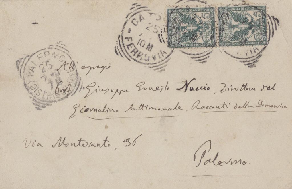 Cartolina interamente autografa e firmata da Luigi Capuana, celebre scrittore, critico letterario e teorico del Verismo italiano.La cartolina, spedita da Catania il 24 luglio 1906, è indirizzata a Giuseppe Ernesto Nuccio, direttore del giornalino settimanale “Racconti della Domenica” di Palermo.Nel testo, Capuana — scrivendo in terza persona, secondo l’uso formale dell’epoca — ringrazia sentitamente il destinatario:“...per la dedica nel racconto "Cane randagio", così piena di sentimento, e per le cortesi parole con cui ha voluto ricordare Gambalesta.”Una preziosa testimonianza epistolare di uno dei padri del Verismo, ricca di fascino e perfetta per collezionisti di autografi e appassionati di letteratura italiana dell’Ottocento.