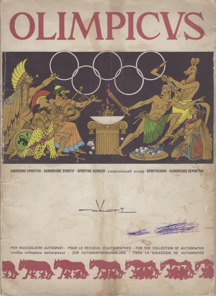 Straordinario libretto d’epoca OLIMPICVS (Roma 1960), pubblicazione concepita per la raccolta di autografi degli atleti olimpici, con normali tracce di utilizzo e segni del tempo in copertina. Le pagine interne risultano integre e gli autografi ben leggibili, rendendo il volume un supporto originale del periodo, idoneo a collezionisti di storia olimpica e di autografi sportivi. Sono numerosissime le firme presenti, tra le quali spicca sicuramente quella di Cassius Clay, futuro Muhammad Ali (USA, pugilato), oro nei mediomassimi: una firma di rilievo storico, appartenente a quello che diventerà il più iconico pugile di tutti i tempi.