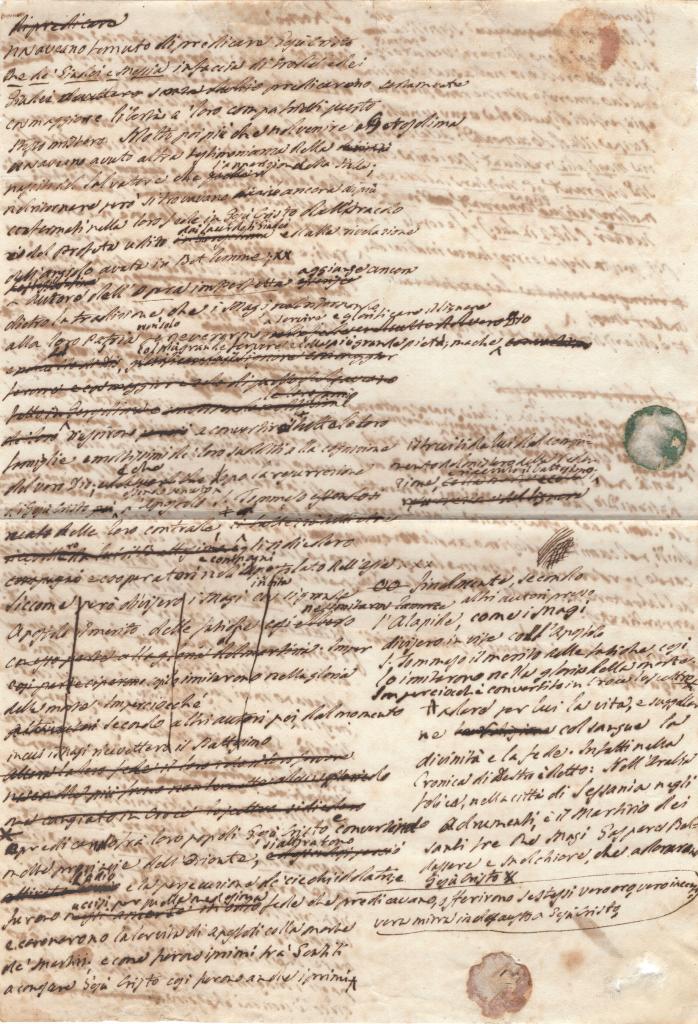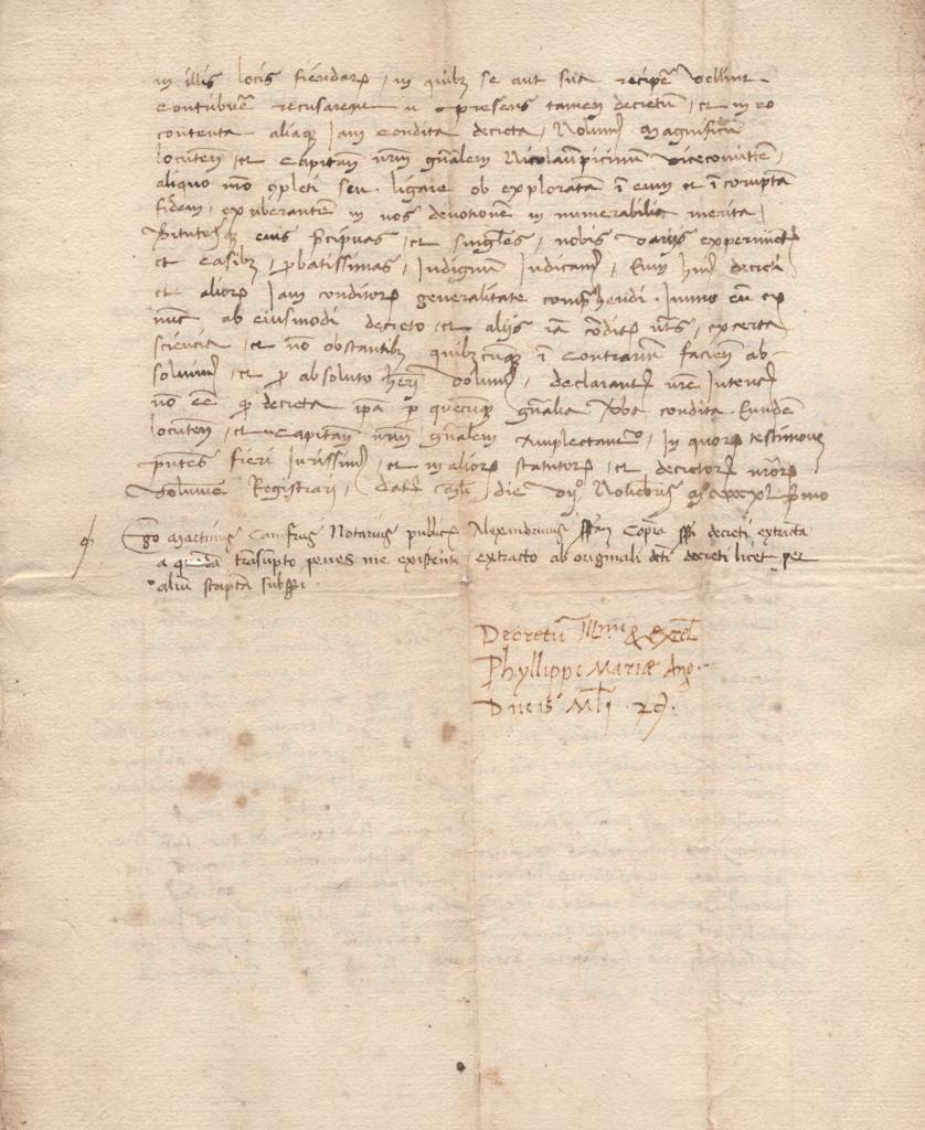 Analogamente, sono presenti numerosi segni tabellionis differenti, sia autografi che a stampa, strutturati secondo modelli simbolici personali (croci apicali, stelle, elementi architettonici stilizzati, cartigli con iniziali). La pluralità dei tabellionati suggerisce che il complesso possa essere considerato anche come un’interessante raccolta di signa tabellionis senesi dell’epoca, di notevole interesse per studiosi di diplomatica, storia del notariato e simbologia professionale. Ogni segno costituisce un elemento giuridicamente qualificante, garante dell’autenticità dell’atto e della responsabilità personale del notaio rogante.
