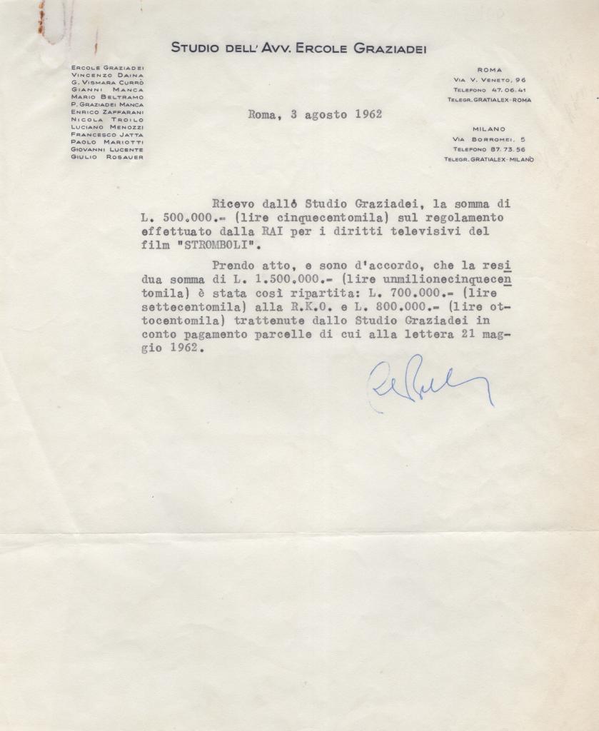 Il catalogo si distingue anche per la varietà dei nuclei presenti: dalla grande musica con Leoncavallo, Mascagni, Beniamino Gigli, Alfredo Kraus e Toti Dal Monte, al teatro e al cinema con Joan Crawford, Isa Miranda, Giorgio Strehler e Tommaso Salvini, fino ai documenti politici e istituzionali legati a figure come Donat-Cattin, Guido Gonella, Agostino Gemelli e Papa Giovanni XXIII.