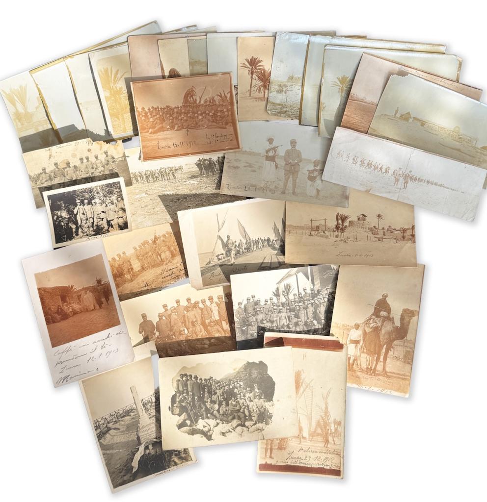 Importante insieme composto da circa 70 fotografie originali d’epoca, realizzate nel contesto della presenza militare italiana in Libia, con particolare riferimento alla zona di Zuara (Zuwara).