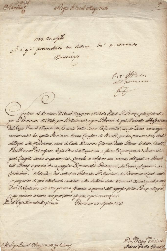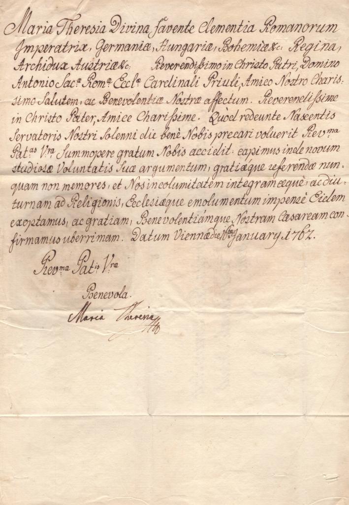 Nella missiva il marchese esprime sentiti ringraziamenti per una recente visita ricevuta, manifestando riconoscenza e comunica inoltre che i suoi studi procedono positivamente, lasciando intravedere un contesto di formazione e crescita personale, probabilmente legato alla permanenza in ambiente spagnolo sotto l’influenza della corte asburgica.