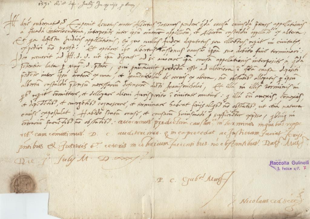 Autografo del Cardinale Filippo Acciaiuoli Risoluzione Controversia