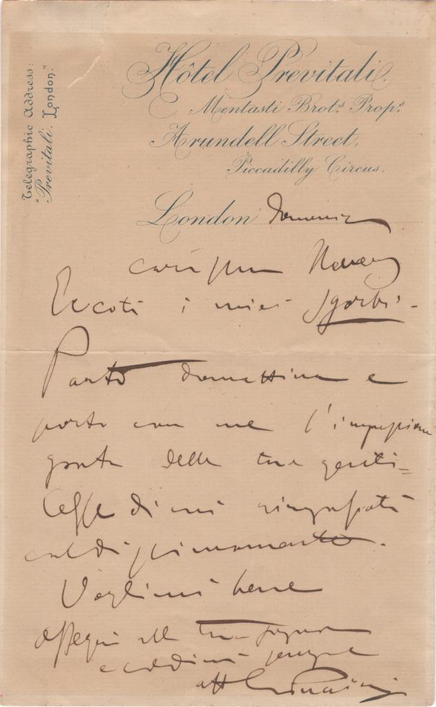 La missiva è datata Ischia, 29 agosto 1883, pochi giorni dopo il disastro sismico che distrusse gran parte di Casamicciola e causò migliaia di vittime.