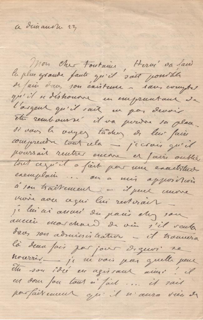 La lettera presenta una postilla autografa del Marchese Villa, apposta per ricevuta e redatta in lingua francese, contenente risposta al contenuto della missiva.