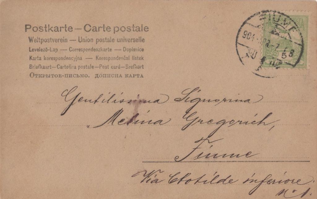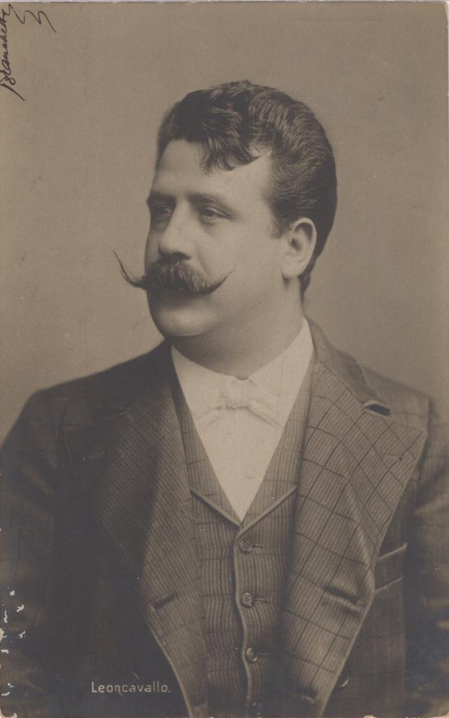 Si allega una cartolina ai sali d'argento che ritrae Leoncavallo inviata a Melina Gregorich.