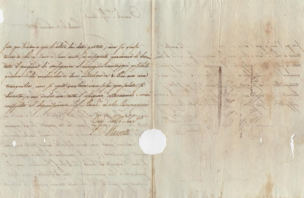 Lettera interamente autografa e firmata da Giuseppe Manetti noto architetto fiorentino, fu allievo di Gaspare Paoletti e divenne protagonista del neoclassicismo toscano. Realizzò opere come la Palazzina Reale della Cascine e fu primo professore di architettura all’Accademia di Belle Arti.