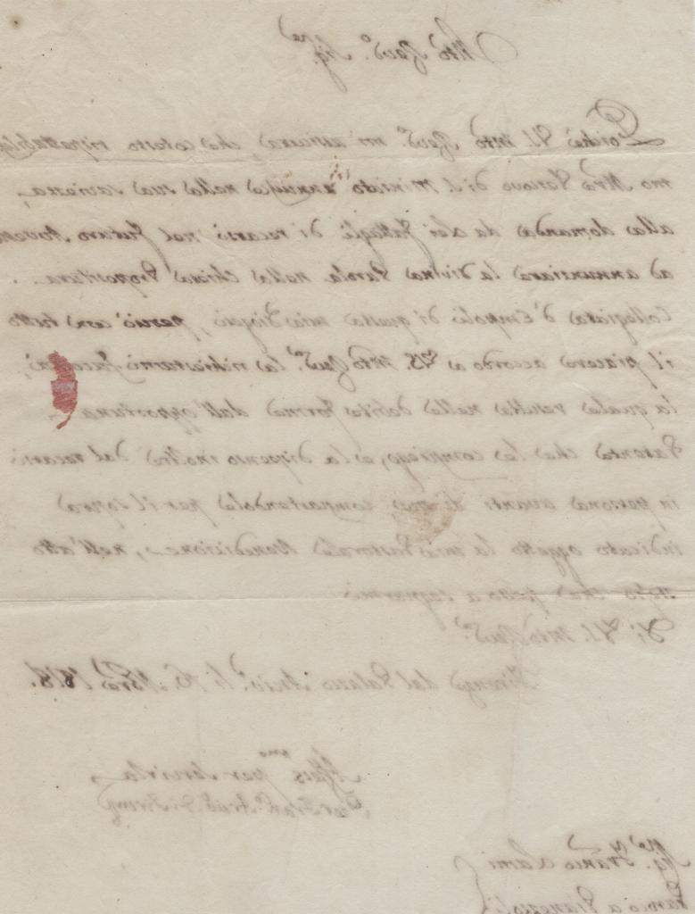 Lettera manoscritta e firmata da Pier Francesco Morali, Arcivescovo di Firenze, datata dal Palazzo Arcivescovile il 16 novembre 1818.