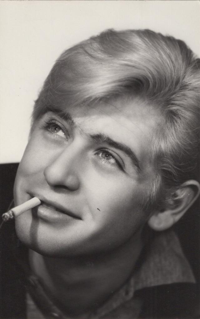 L’immagine ritrae l’attore in un intenso primo piano, sigaretta tra le labbra, con lo sguardo magnetico che caratterizzava le sue interpretazioni sul grande schermo e in teatro.