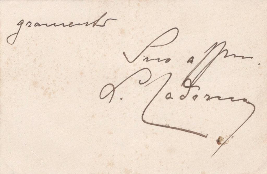 I biglietti da visita arricchiti da annotazioni di questa ampiezza e firmati risultano estremamente rari e di alto valore storico.
