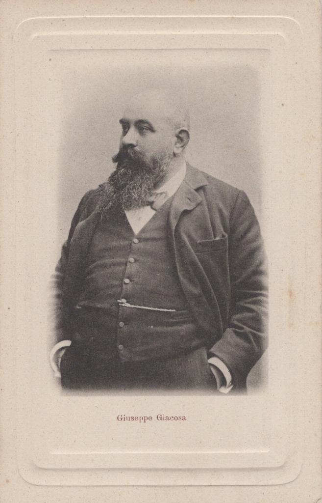 Presente nel lotto anche una cartolina originale dell’epoca che ritrae Giacosa.