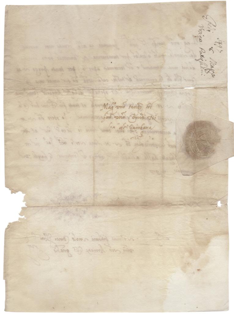 La lettera si inserisce nel contesto delle tensioni politiche e militari del tardo Quattrocento e può essere letta come un tassello della preparazione della campagna militare che l’Orsini avrebbe condotto l’anno successivo contro il Re di Francia, al servizio della Repubblica di Venezia. Firma apposta in calce alla lettera manoscritta datata 8 marzo 1497.