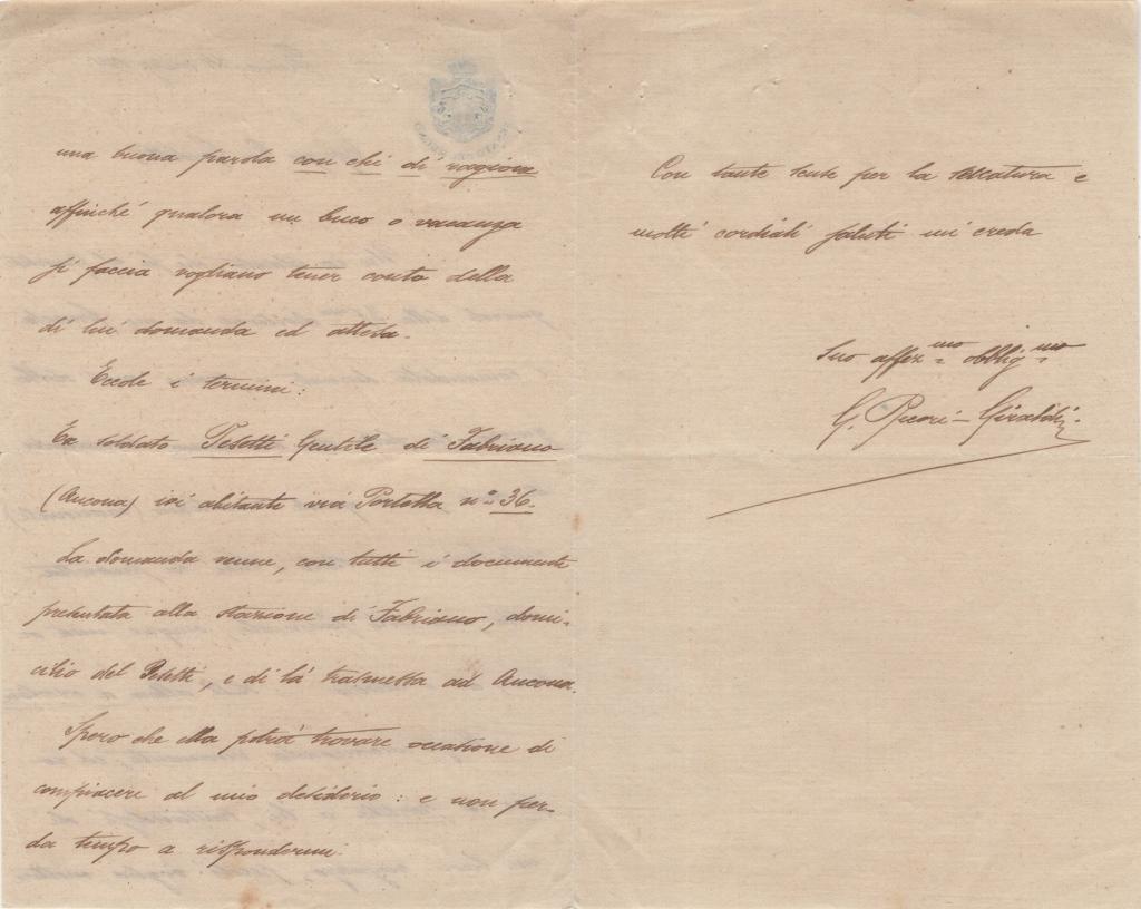 Lettera interamente manoscritta e firmata da Guglielmo Pecori Giraldi, redatta su carta intestata del Senato del Regno e indirizzata al Cavalier Guidotti.