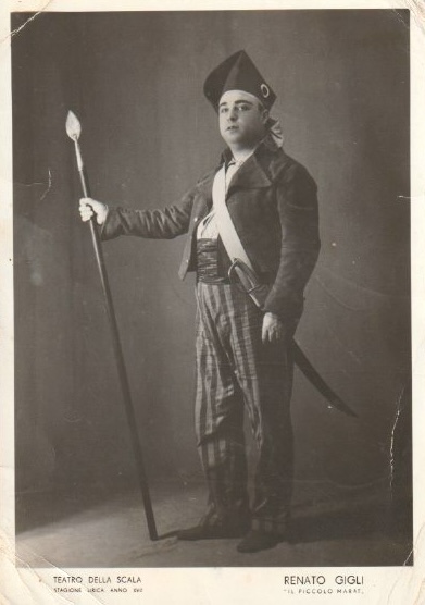 La nota manoscritta è una dedica al tenore Renato Gigli, celebrato come interprete delle principali opere mascagnane (Cavalleria rusticana, Isabeau, Ratcliff, Parisina), in occasione del cinquantenario della sua apparizione al Teatro alla Scala. Il compositore esprime apprezzamento artistico e cordiali auguri per la ricorrenza.