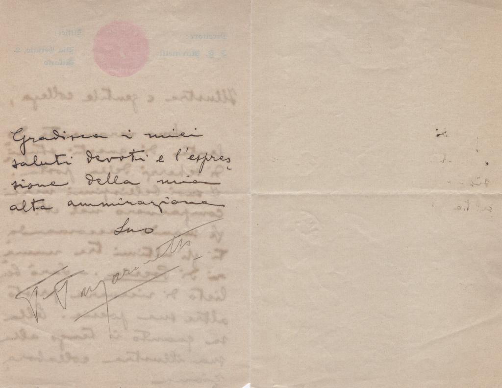 La lettera assume particolare interesse per il contenuto programmatico: Marinetti esprime infatti il desiderio di continuare la collaborazione con il destinatario, dichiarandosi lieto di ricevere ulteriori componimenti poetici. Il testo si conclude con una formula cordiale, accompagnata da espressioni di stima e ammirazione, tipiche della rete di relazioni intellettuali costruita attorno al movimento futurista.